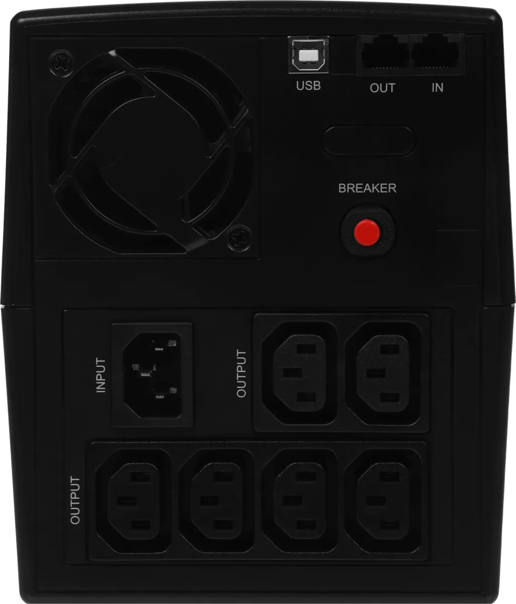 защита сети (порт RJ-45), от глубокого разряда батареи, от импульсных помех, от короткого замыкания, от перегрузки -
