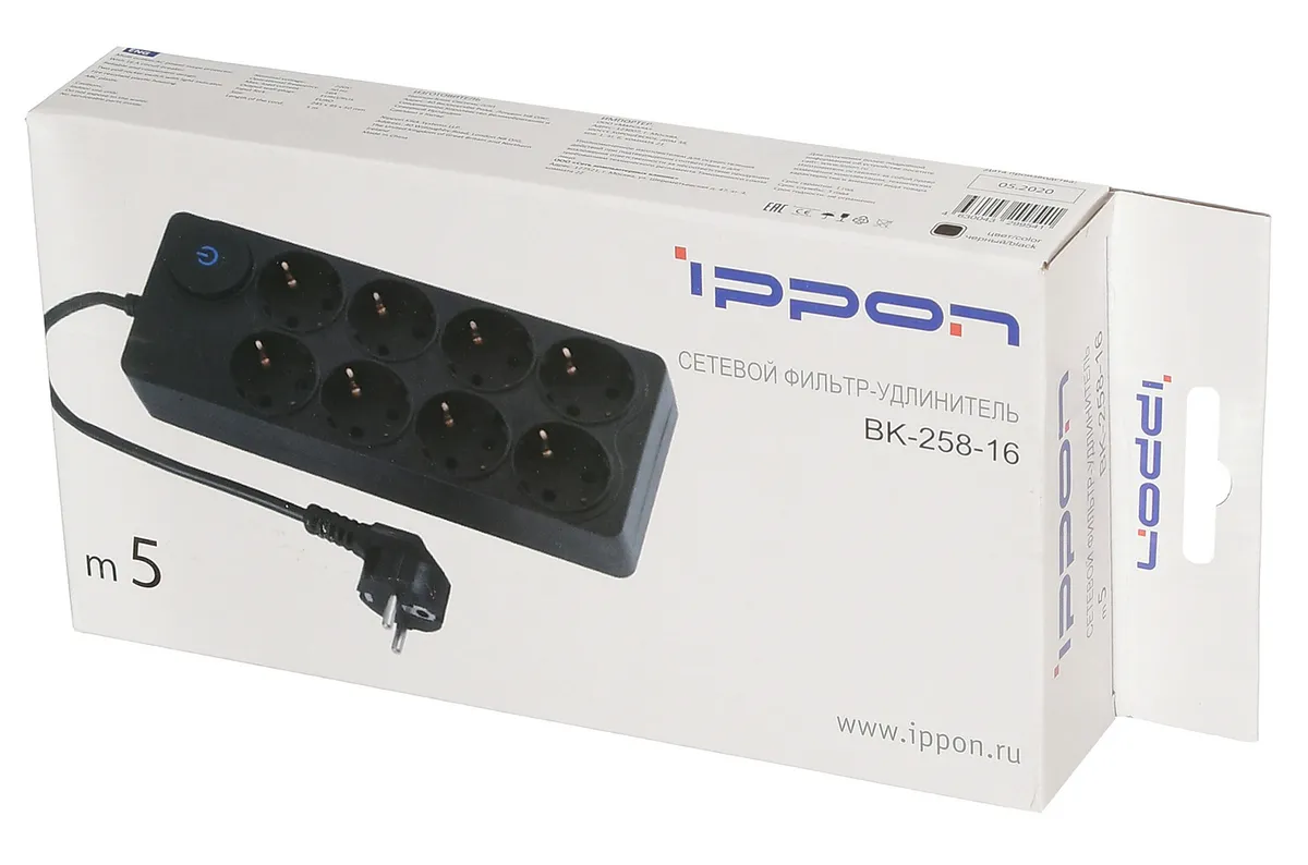 Сетевой фильтр Ippon BK258-16 5м (8 розеток) черный (BK258-16)