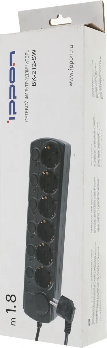 Сетевой фильтр Ippon BK212-SW 1.8м (6 розеток) белый (BK212-SW)