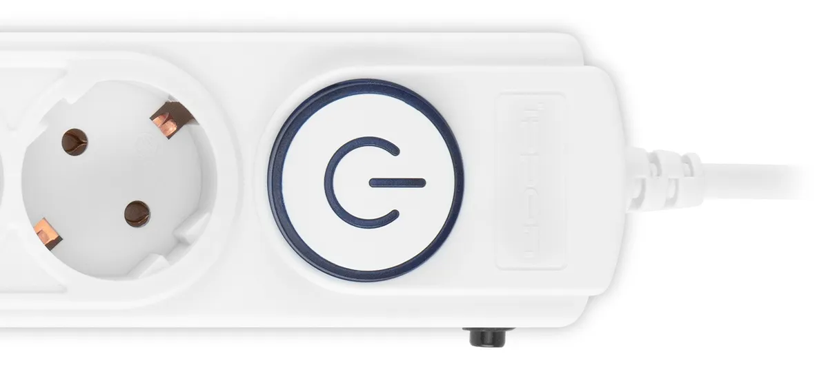 6 евророзеток с заземлением. Входная вилка Schuko. Защита от перегрузки. Защита от импульсов высокого напряжения. Защита от перетирания провода в месте входа в корпус фильтра. Ударопрочный негорючий корпус. Кнопка питания с индикатором сети. -