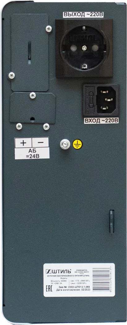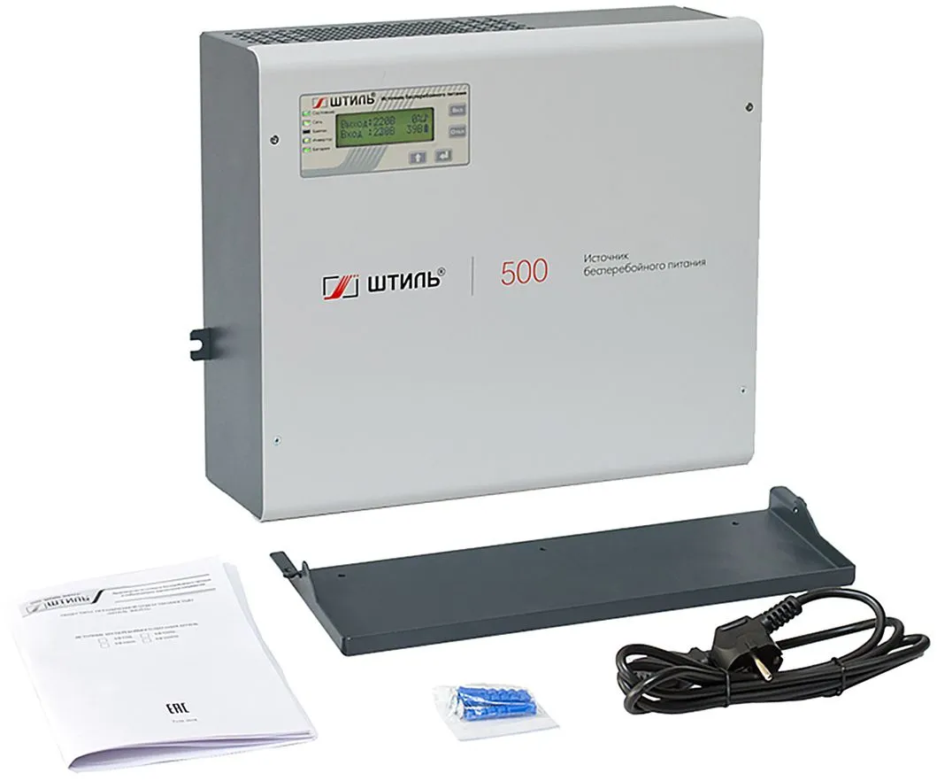 ИБП переменного тока SW500SL, 2х встроенные аккумуляторные батареи (12 В, 9 Ач), сетевой шнур с вилкой типа «Schuko - C13» 1.5 м, комплект для настенного крепления, руководство по эксплуатации, упаковка, гарантийный талон -
