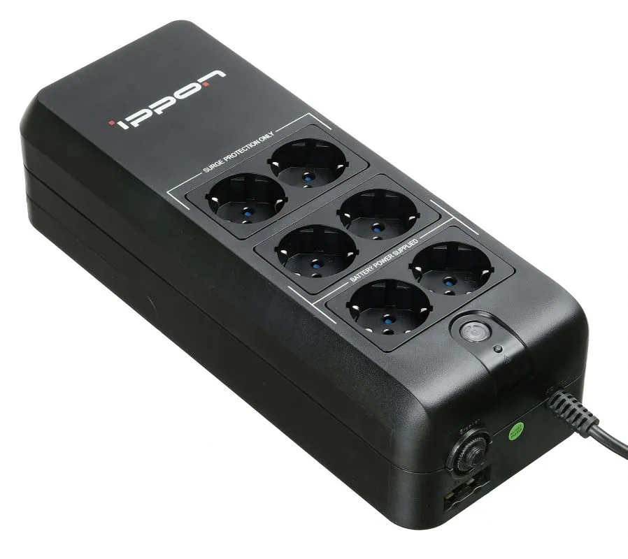 нормальное переключение на питание от батареи 2-8мс, батарея необслуживаемая свинцово-кислотная 12 В/5 Ач*1, звуковая индикация состояния бесперебойника -