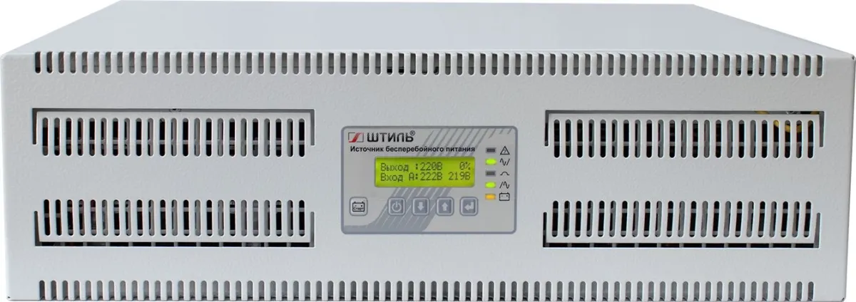 отображение рабочего состояния системы и основных входных и выходных параметров; светодиодная индикация: состояние, сеть, байпас, инвертор, батарея -