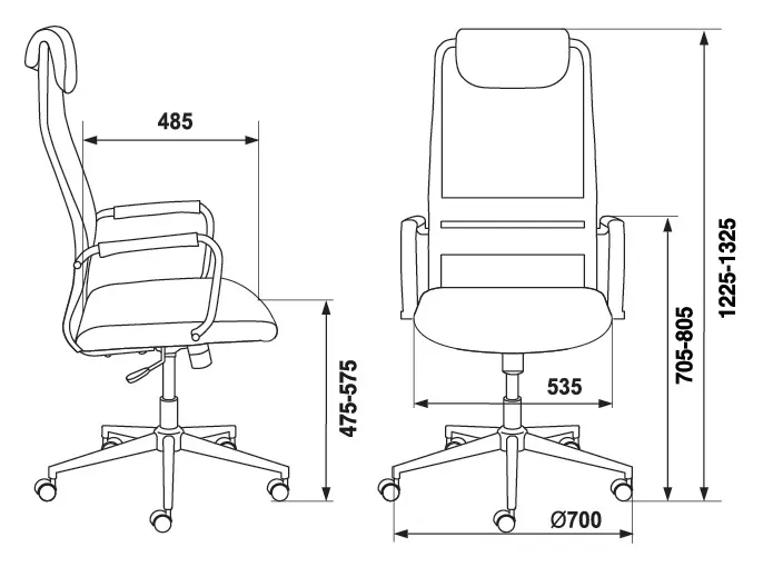 Высота с подлокотниками MIN