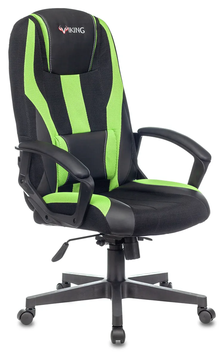 Кресло игровое Zombie VIKING-9 черный/салатовый текстиль/эко.кожа крестов. пластик (VIKING-9/BL+SD)