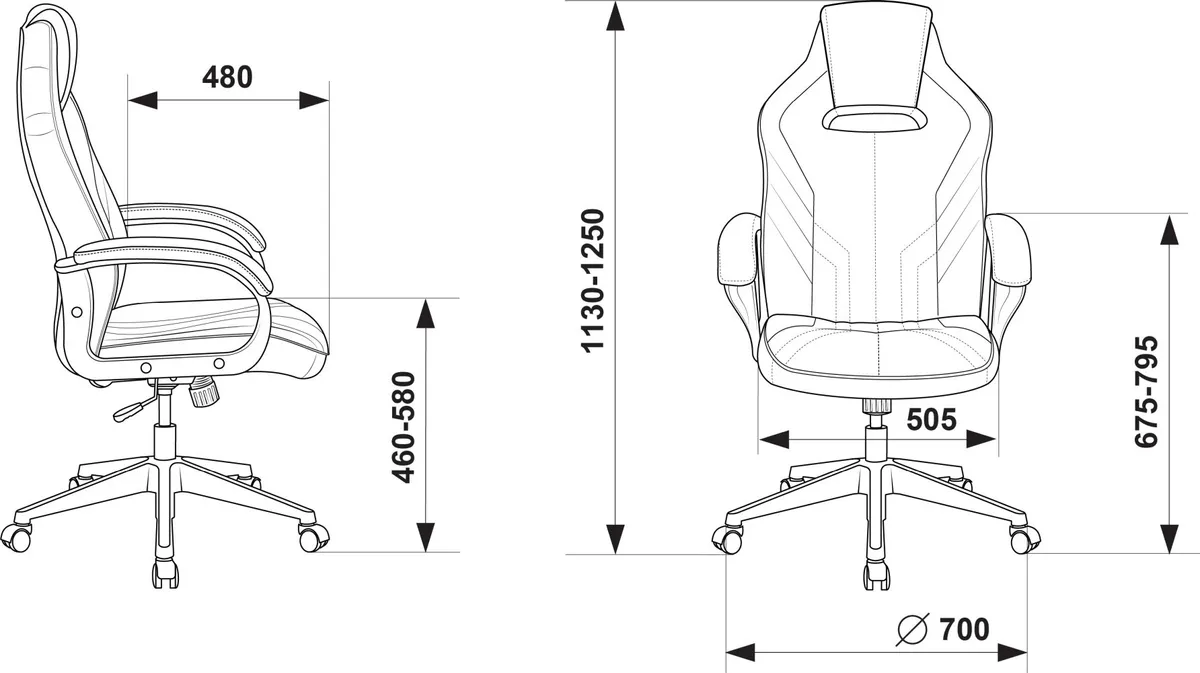 Высота с подлокотниками MIN