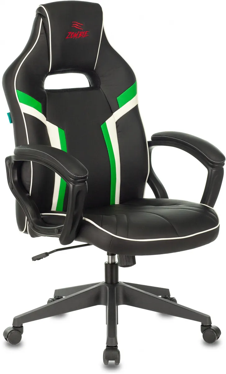 Кресло игровое Zombie Z3 черный/зеленый эко.кожа крестов. пластик (VIKING ZOMBIE Z3 GRN)