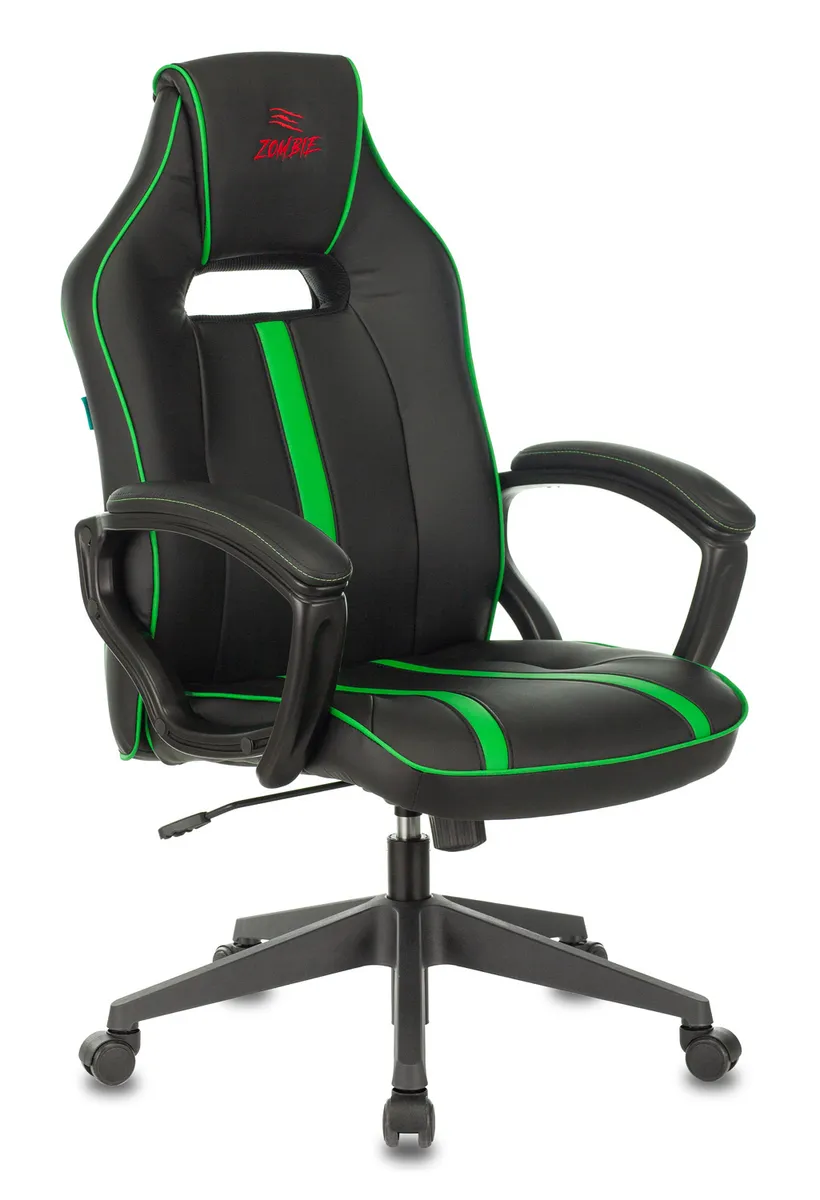 Кресло игровое Zombie A3 черный/зеленый эко.кожа крестов. пластик (VIKING ZOMBIE A3 GN)