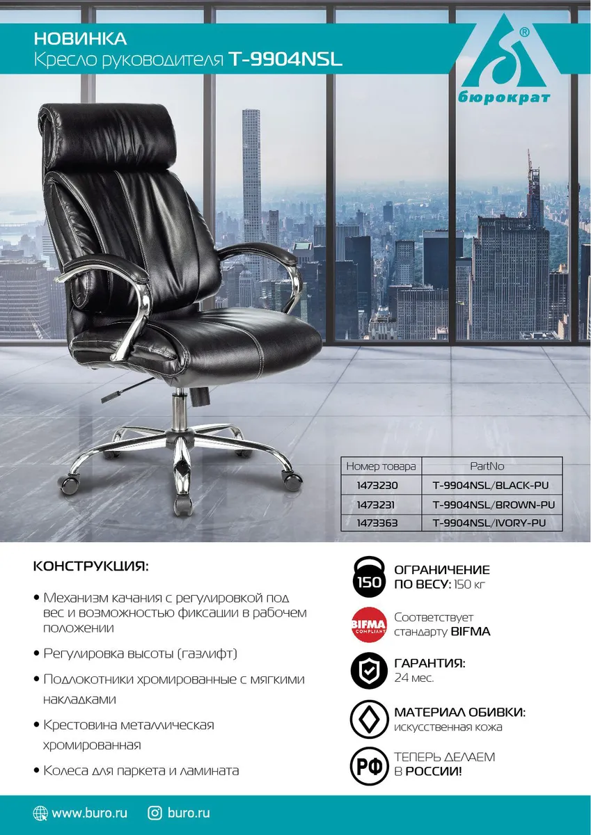 Кресло руководителя Бюрократ T-9904NSL слоновая кость OR-10 эко.кожа (T-9904NSL/IVORY-PU)