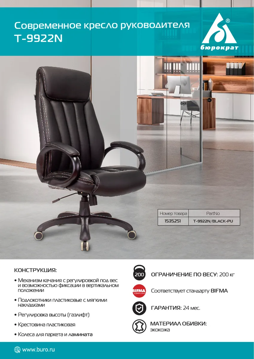 Кресло руководителя Бюрократ T-9922N черный эко.кожа крестов. пластик (T-9922N/BLACK-PU)