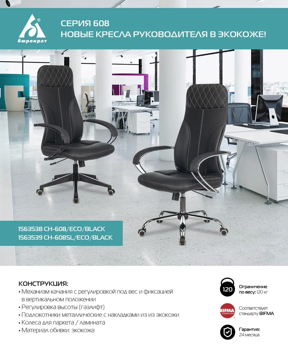 Кресло руководителя Бюрократ CH-608SL/ECO черный эко.кожа крестов. металл (CH-608SL/ECO/BLACK)