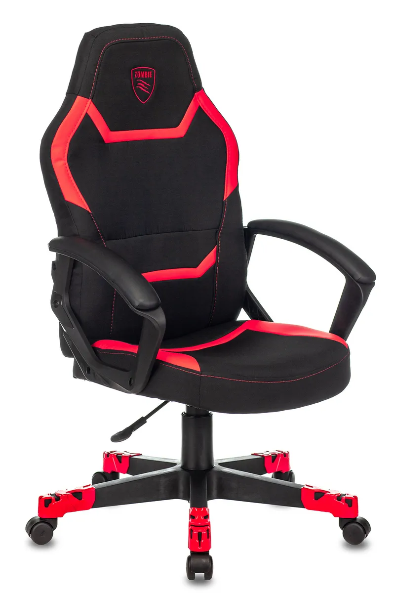 Кресло игровое Zombie 10 черный/красный ткань/эко.кожа крестов. пластик (ZOMBIE 10 RED)