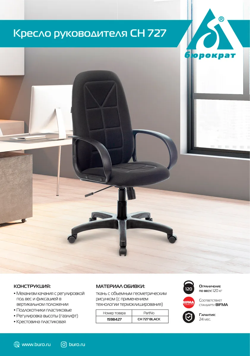 Кресло руководителя Бюрократ CH 727 черный крестов. пластик (CH 727 BLACK)