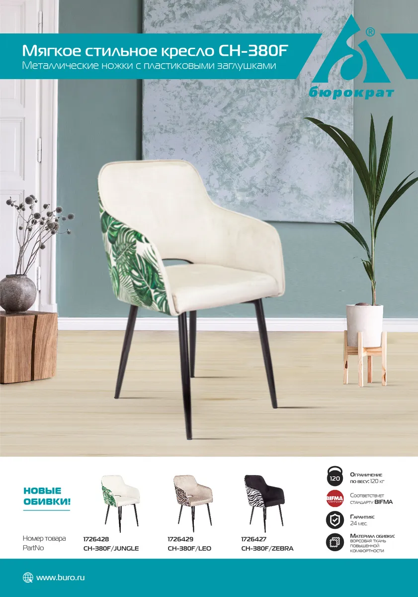 Кресло Бюрократ CH-380F черный зебра на ножках металл (CH-380F/ZEBRA)