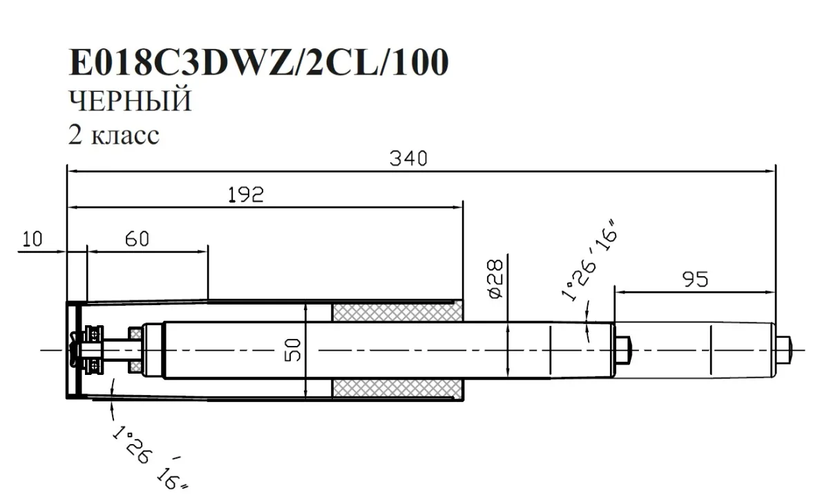 длина в открытом виде 340 мм, ход штока 95 мм, d50 мм, класс 2 -