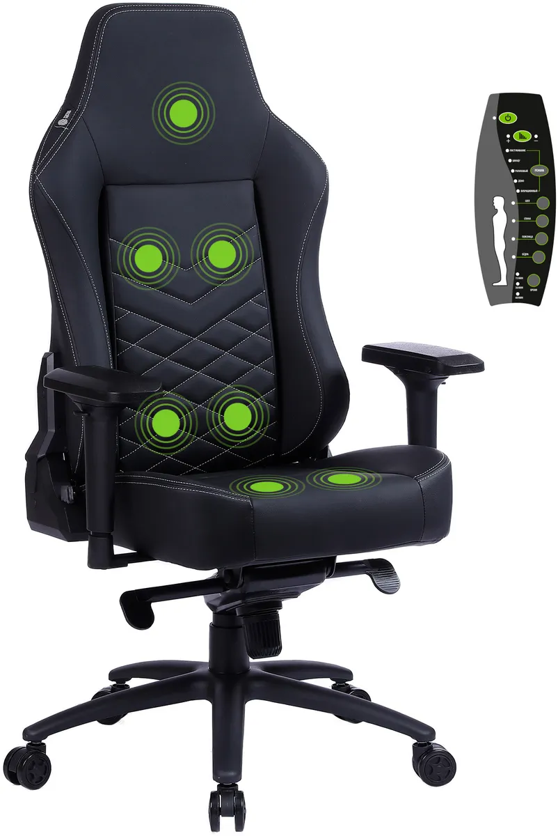 Кресло игровое Cactus с вибромассажем черный эко.кожа с (CS-CHR-0112BL-M)
