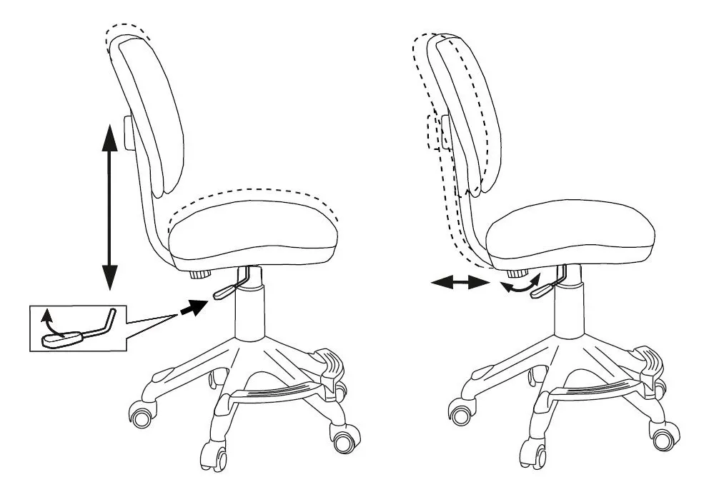 высоты (газлифт), глубины сиденья -