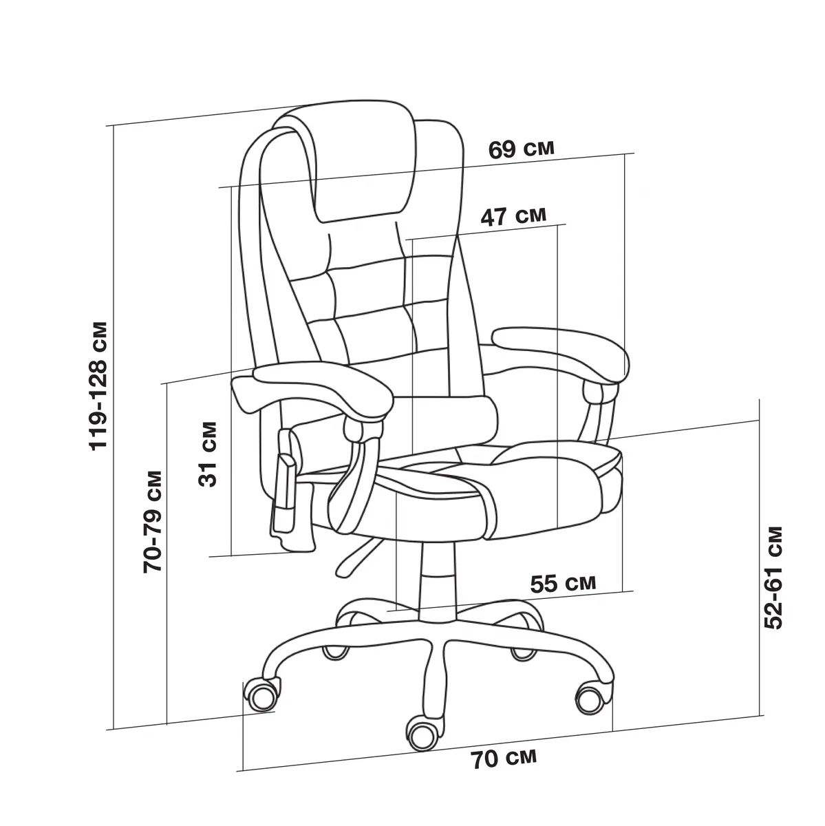 Высота с подлокотниками MIN