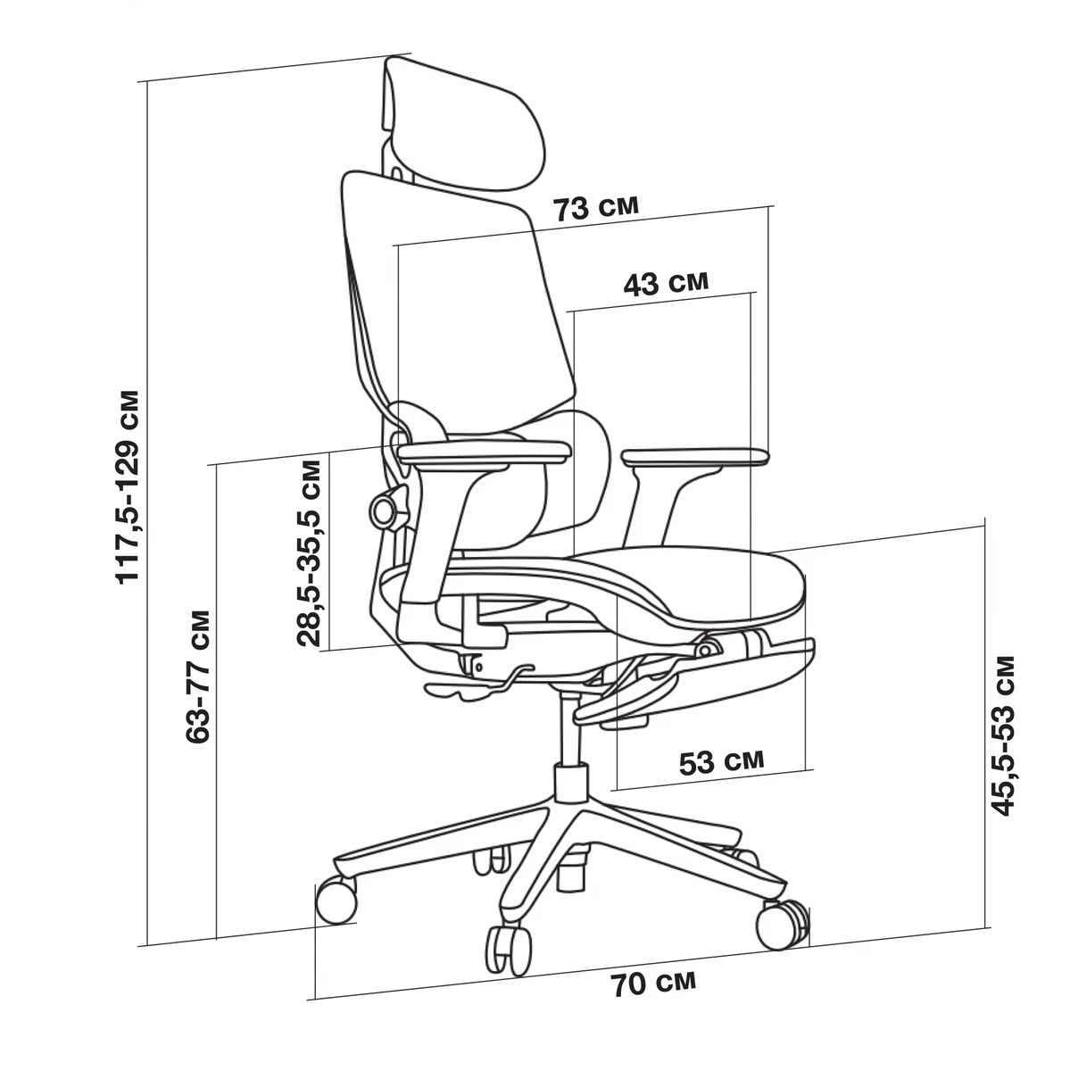 Ширина с подлокотниками