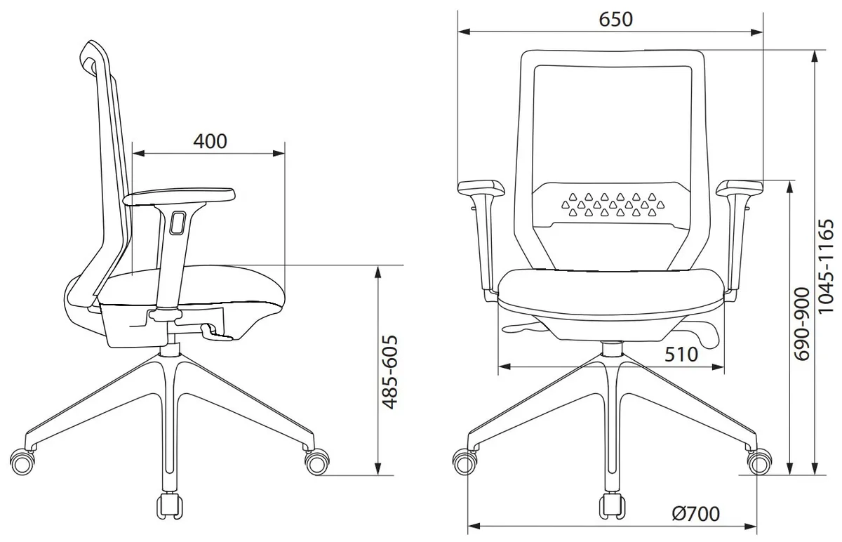 Высота с подлокотниками MIN