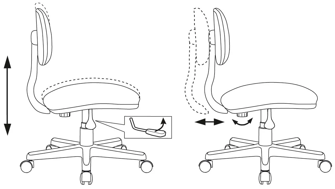 высоты (газлифт), глубины сиденья -