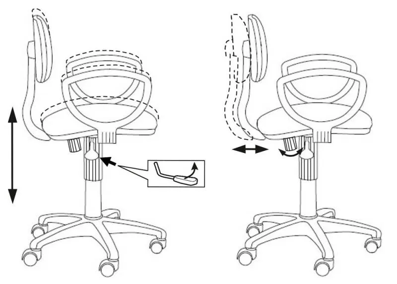 высоты (газлифт), глубины сиденья -