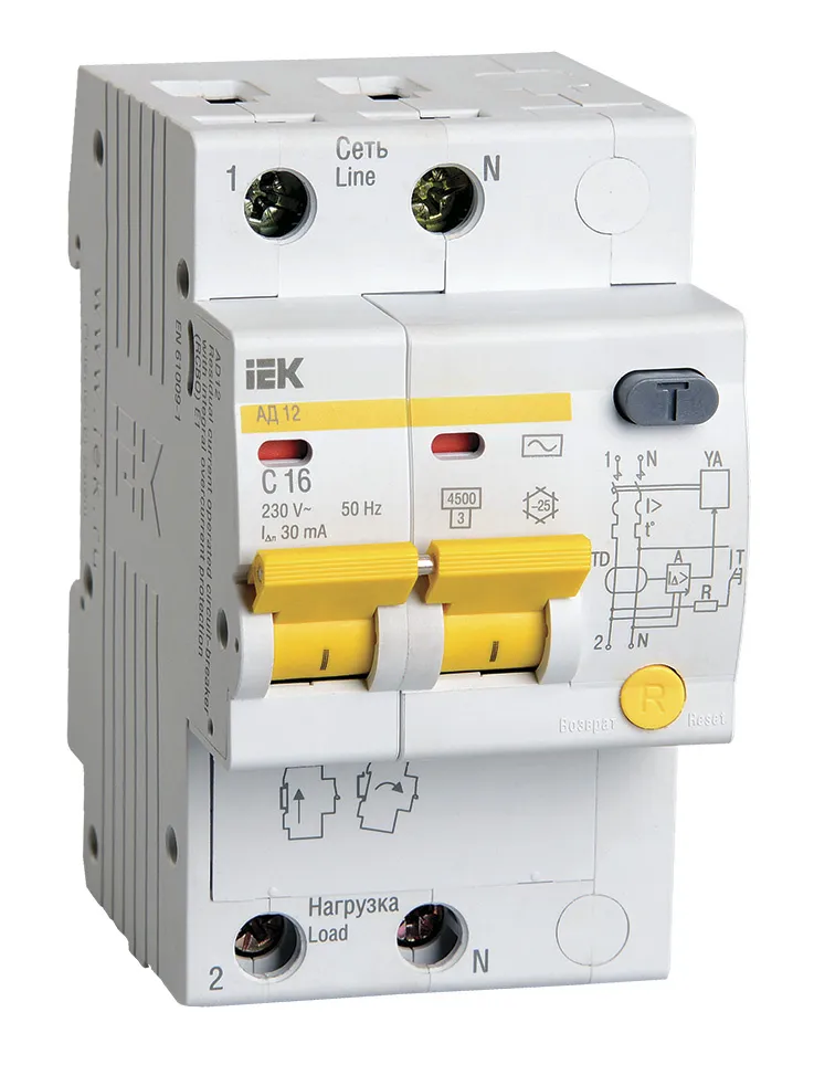 Выключатель автом. дифф. тока IEK MAD10-2-016-C-030 АД12 16A (MAD10-2-016-C-030)