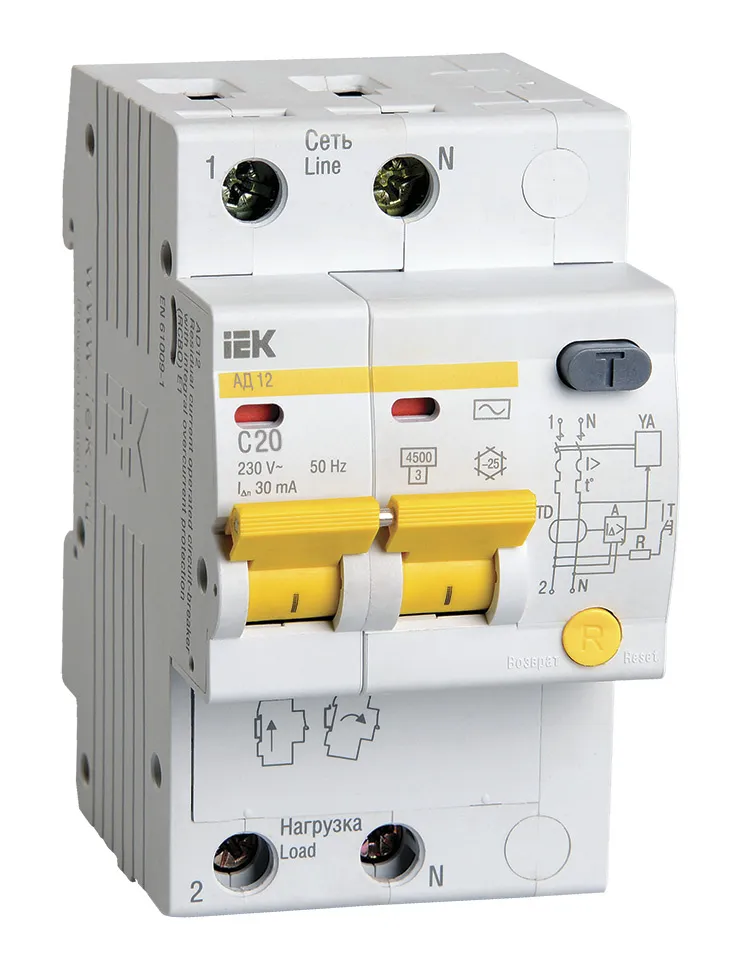 Выключатель автом. дифф. тока IEK MAD10-2-020-C-030 АД12 20A (MAD10-2-020-C-030)