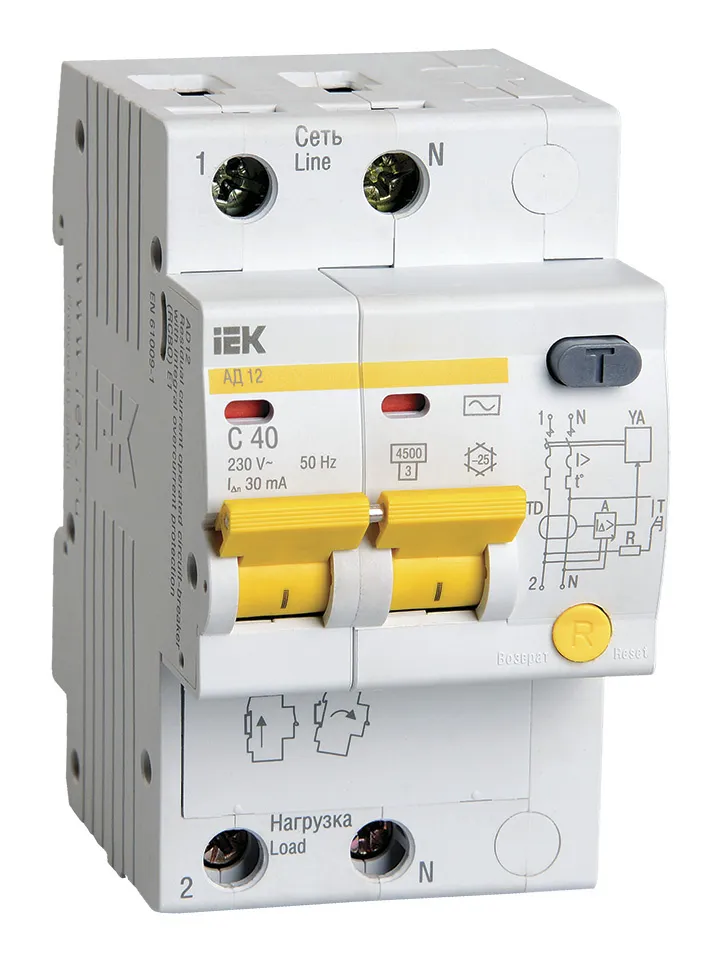 Выключатель автом. дифф. тока IEK MAD10-2-040-C-030 АД12 40A (MAD10-2-040-C-030)