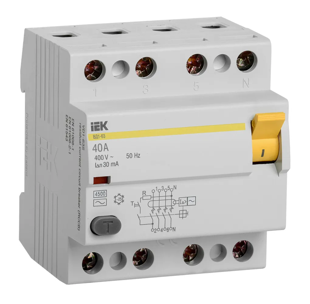 Выключатель дифф.тока УЗО IEK MDV10-4-040-030 ВД1-63 40A 30мА (MDV10-4-040-030)