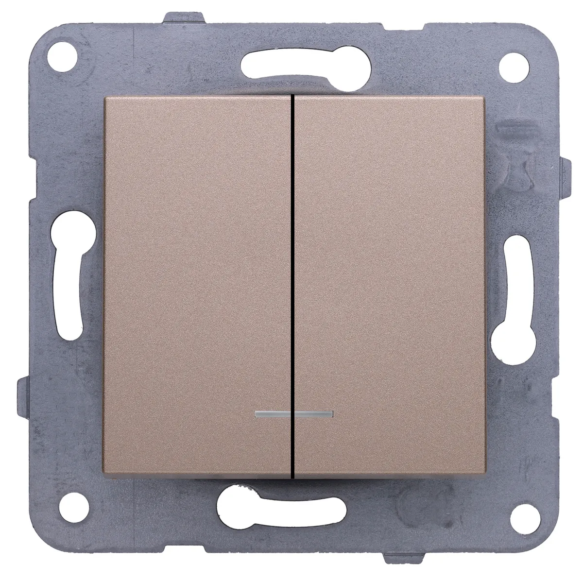 Выключатель 2-х клавишный с подсветкой, мех+накладка, бронза Для применения в жилищных, коммерческих и гостиничных пространствах -