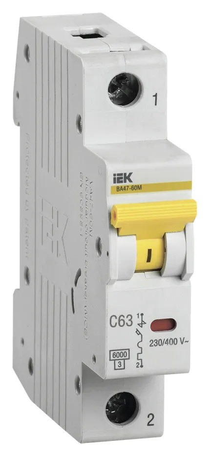 Выключатель автоматический IEK MVA31-1-063-C 63A тип C 6kA (MVA31-1-063-C)