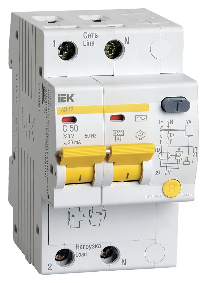 Выключатель автом. дифф. тока IEK MAD10-2-050-C-030 АД12 50A (MAD10-2-050-C-030)