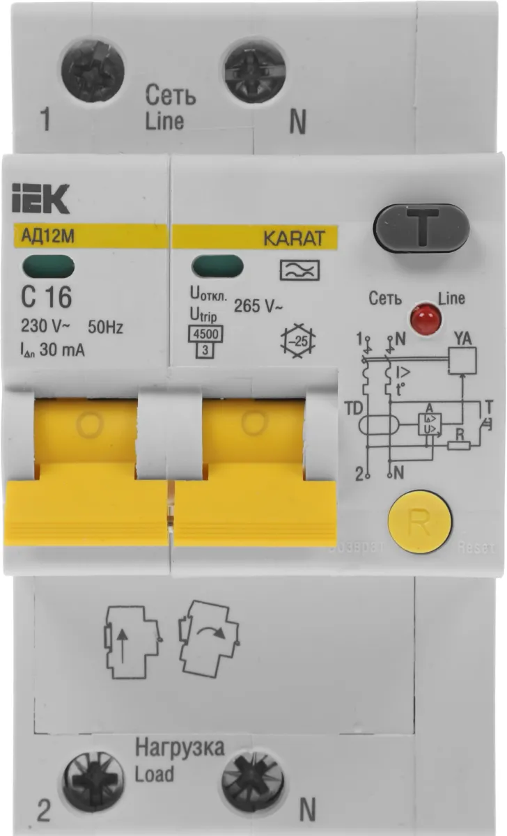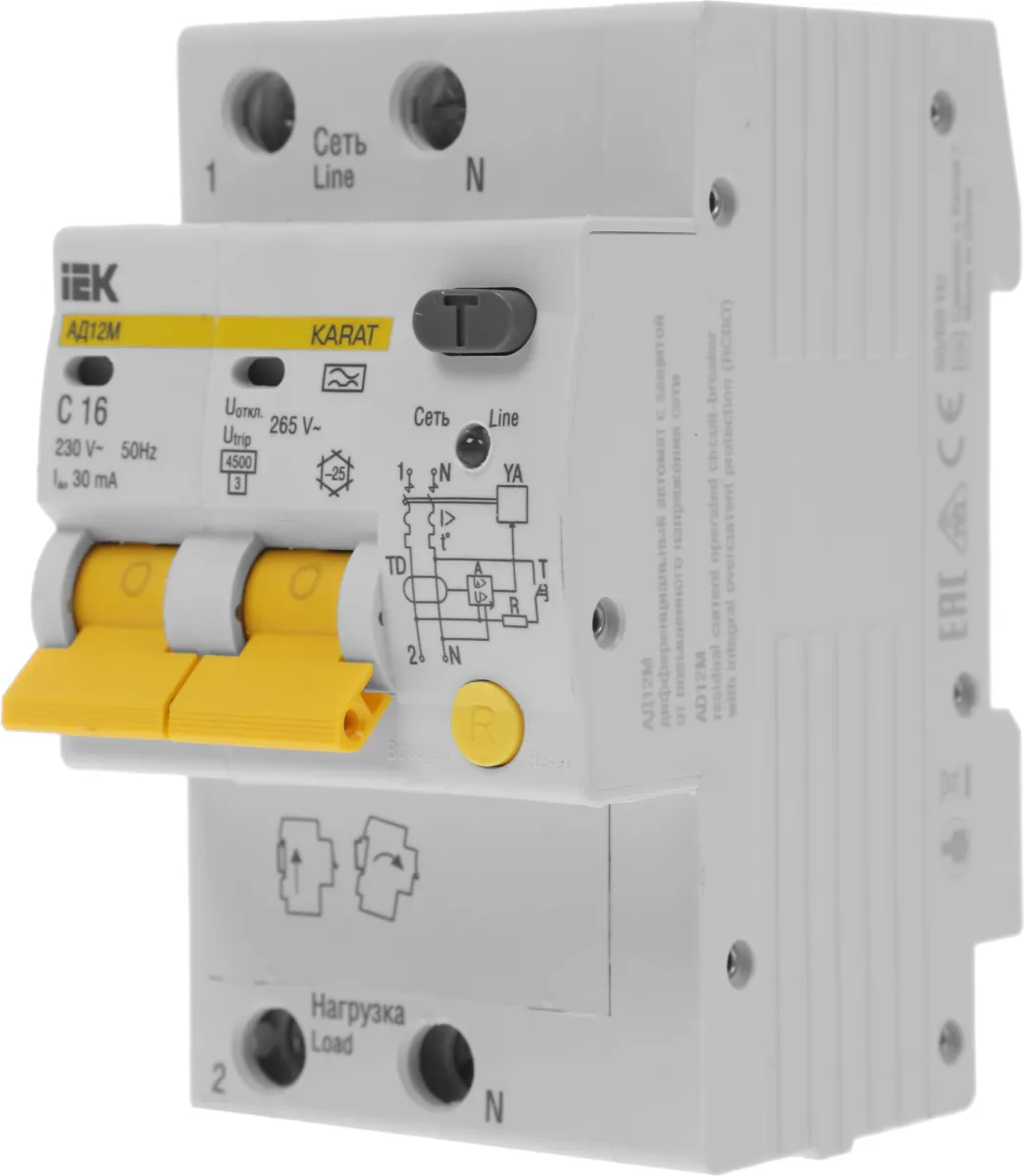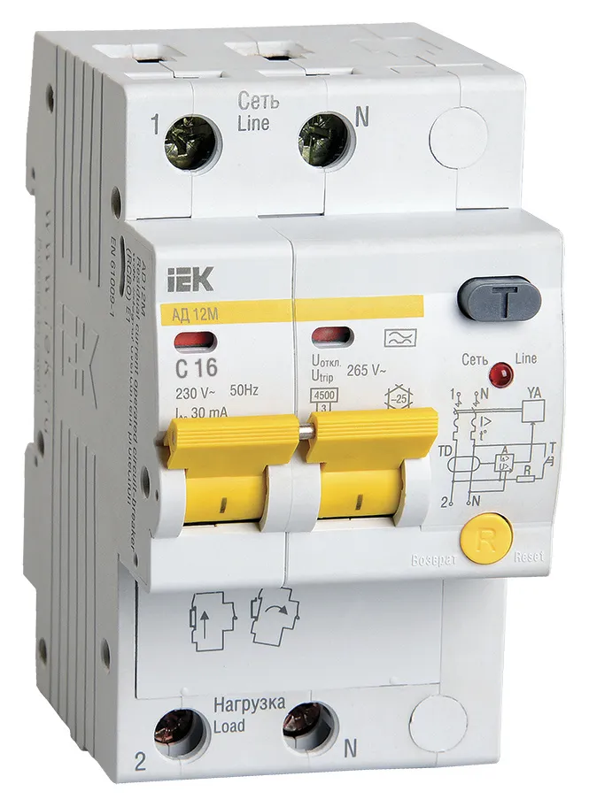 Выключатель автом. дифф. тока IEK MAD12-2-016-C-030 АД12М 16A (MAD12-2-016-C-030)
