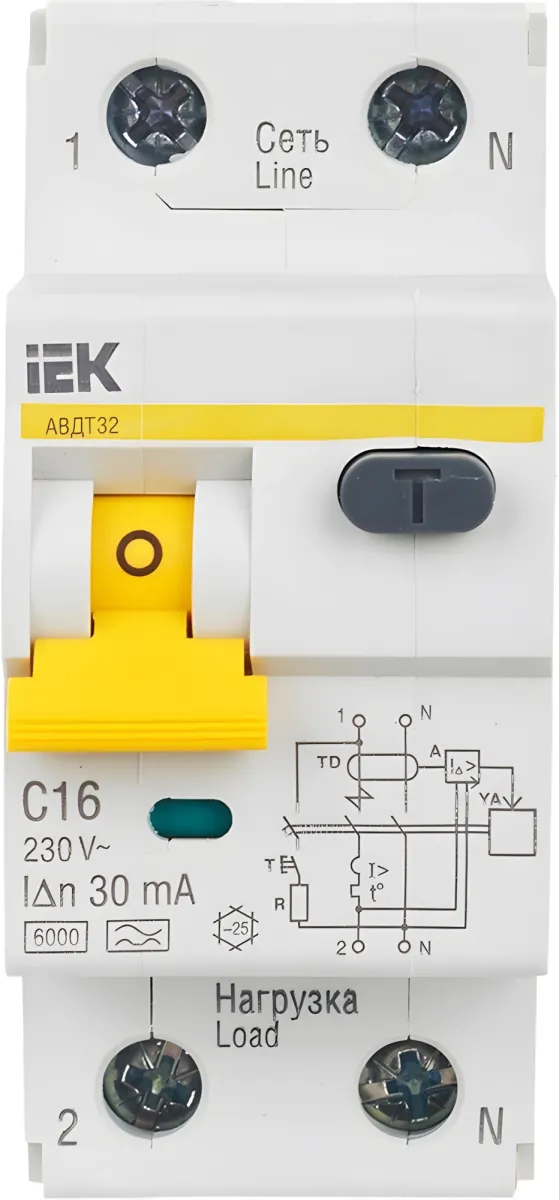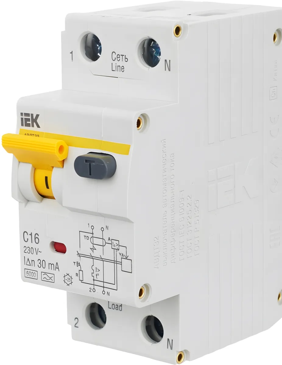 Выключатель автом. дифф. тока IEK MAD22-5-016-C-30 АВДТ 32 (MAD22-5-016-C-30)