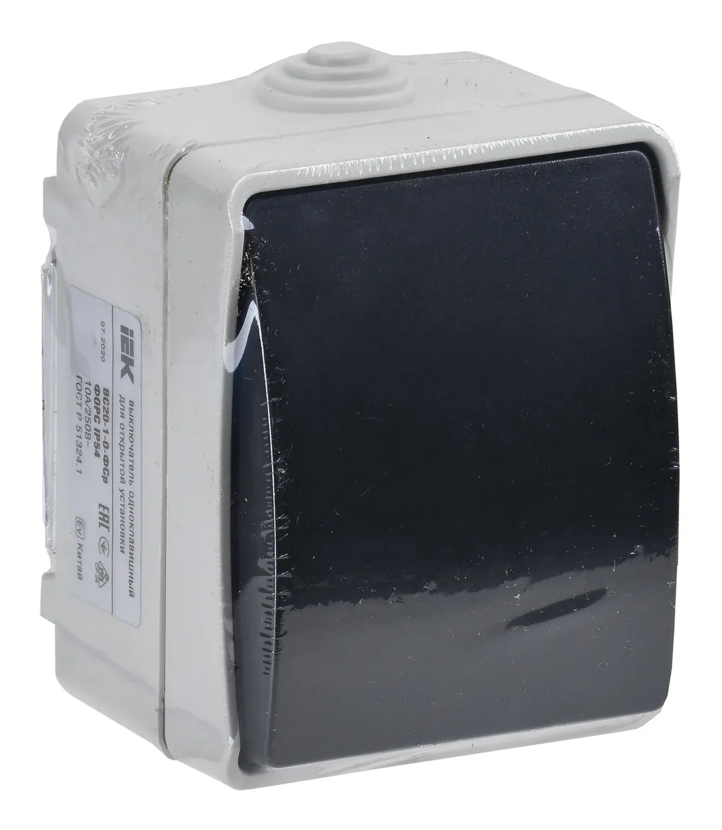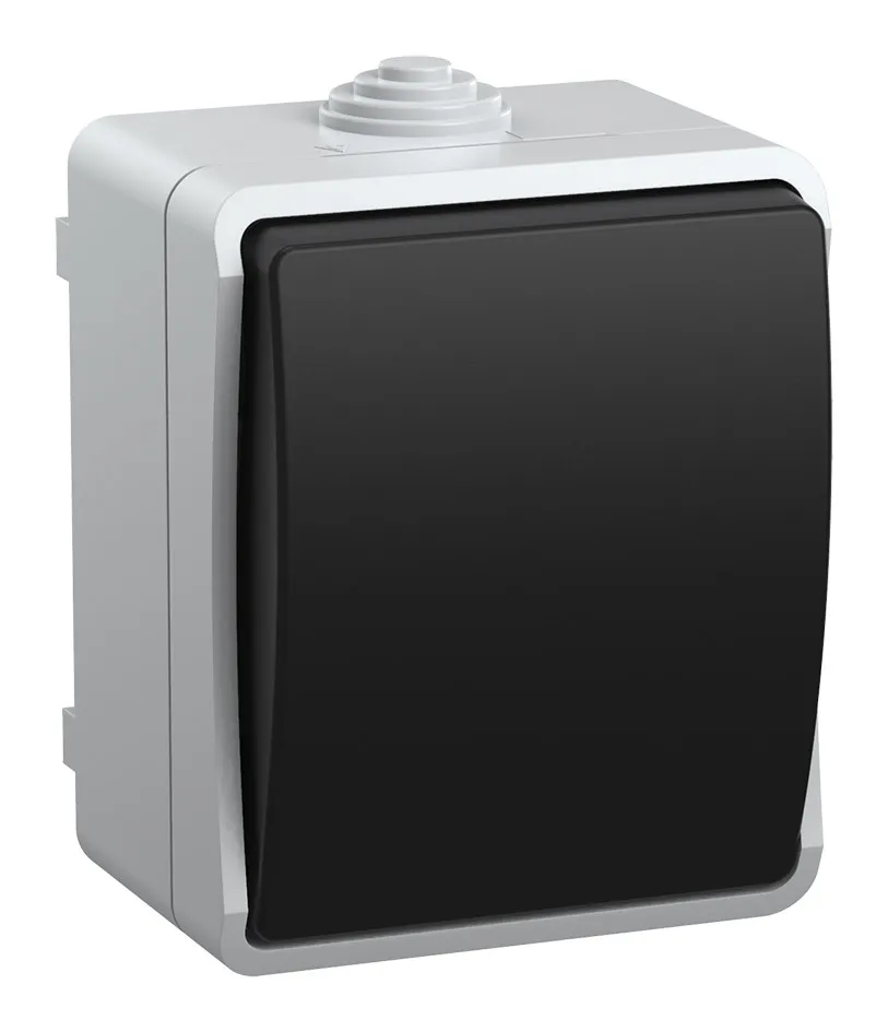 Выключатель IEK Форс откр. 1кл. IP54 серый/черный (упак.:1шт) (EVS10-K03-10-54-DC)