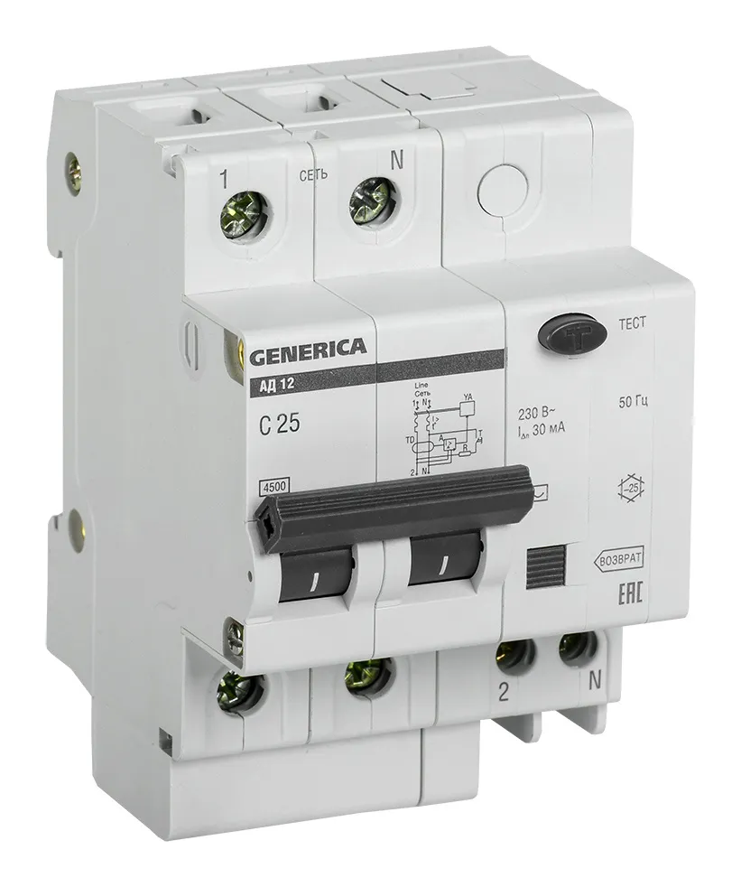Выключатель автом. дифф. тока IEK MAD15-2-025-C-030 АД12 Generica (MAD15-2-025-C-030)
