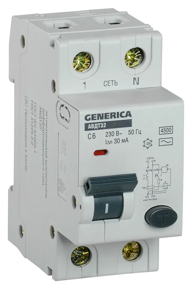 Выключатель автом. дифф. тока IEK MAD25-5-006-C-30 АВДТ 32 (MAD25-5-006-C-30)