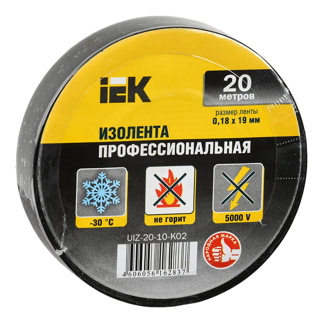 Изолента IEK ш.19мм 20м черный (упак.:10шт) (UIZ-20-10-K02-10PCS) (UIZ-20-10-K02-10PCS)