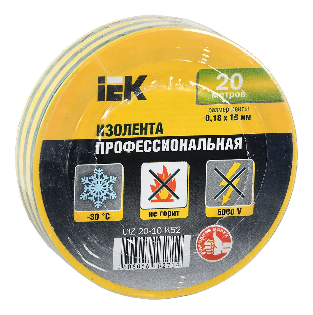 Изолента IEK UIZ-20-10-K52 ш.19мм 20м желтый/зеленый (упак.:10шт) (UIZ-20-10-K52-10PCS) (UIZ-20-10-K52-10PCS)