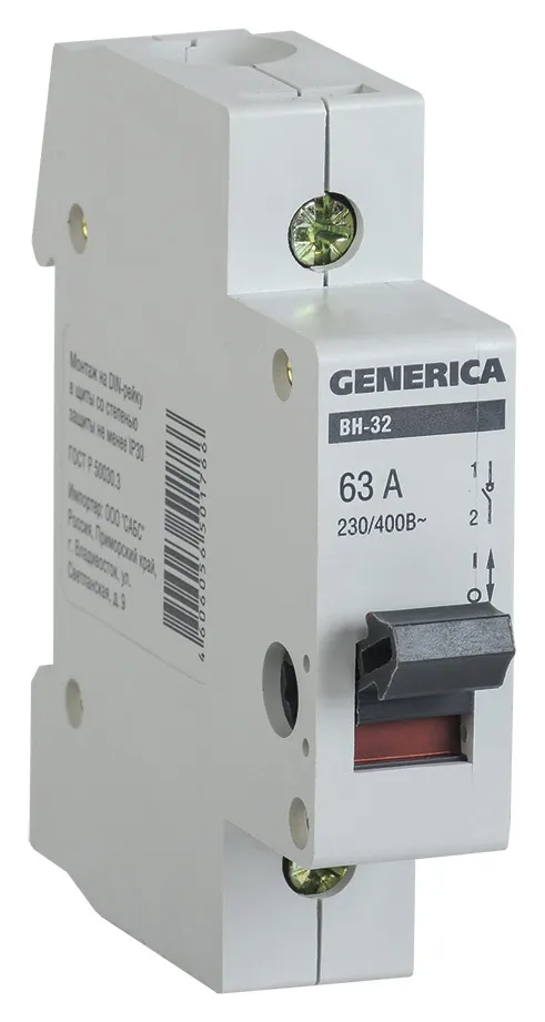 Выключатель IEK MNV15-1-063 Generica 63A 1П 230В 1мод (MNV15-1-063)