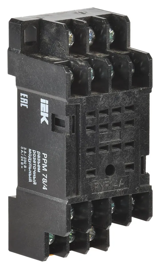 Разъёмы розеточные модульные РРМ77, РРМ78 IEK предназначены для применения в цепях переменного тока 230В 50Гц и постоянного тока 24В (ГОСТ 30011.5.1), являются комплектующими для реле промежуточных серий РЭК77 и РЭК78. На разъёмах расположены зажимы вывод -