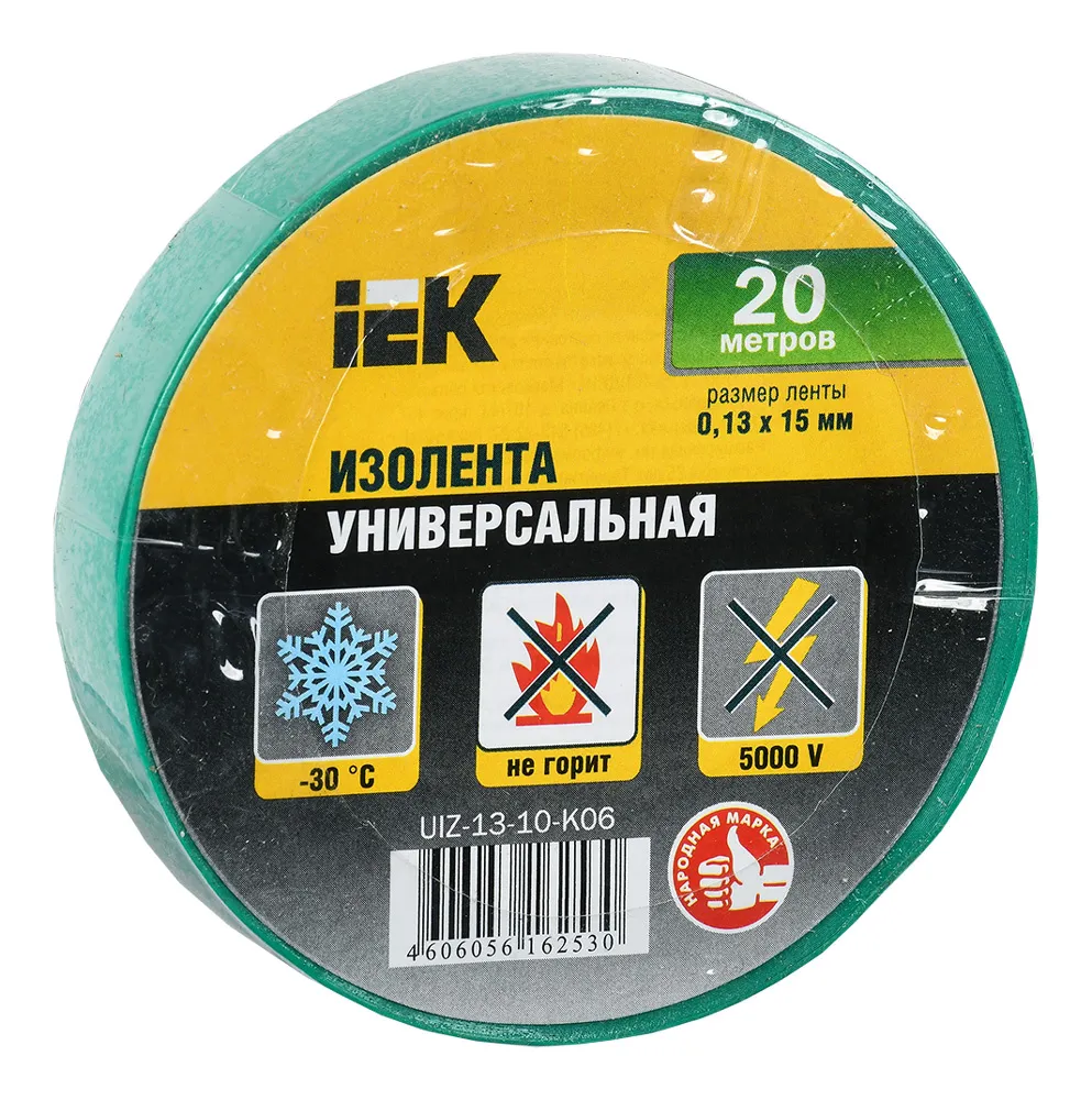 Изолента IEK ш.15мм 20м зеленый (упак.:10шт) (UIZ-13-10-K06-10PCS) (UIZ-13-10-K06-10PCS)
