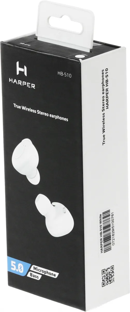 Беспроводные стереонаушники со встроенным микрофоном. Особенность Harper HB-510 в полном отсутствии проводов. Скоростной протокол Bluetooth 5.0 поддерживает надежное сопряжение как с телефоном, так и между наушниками -