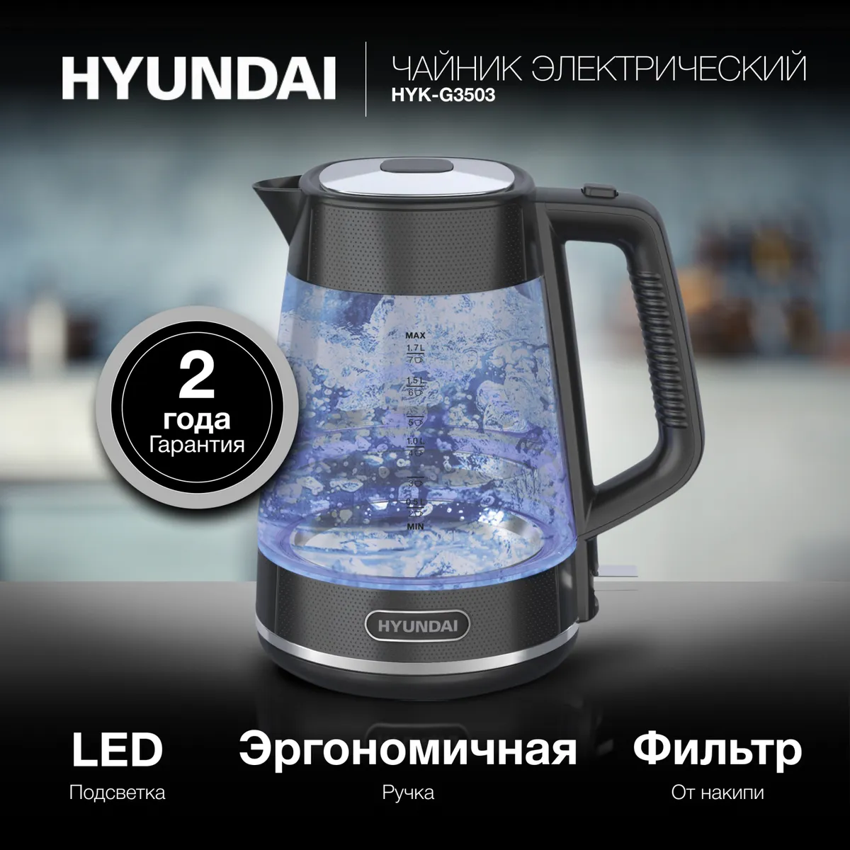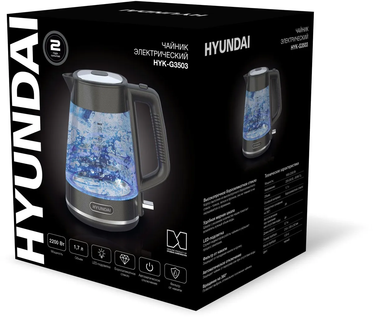 Чайник электрический Hyundai HYK-G3503 1.7л. 2200Вт черный/серебристый (корпус: (HYK-G3503)