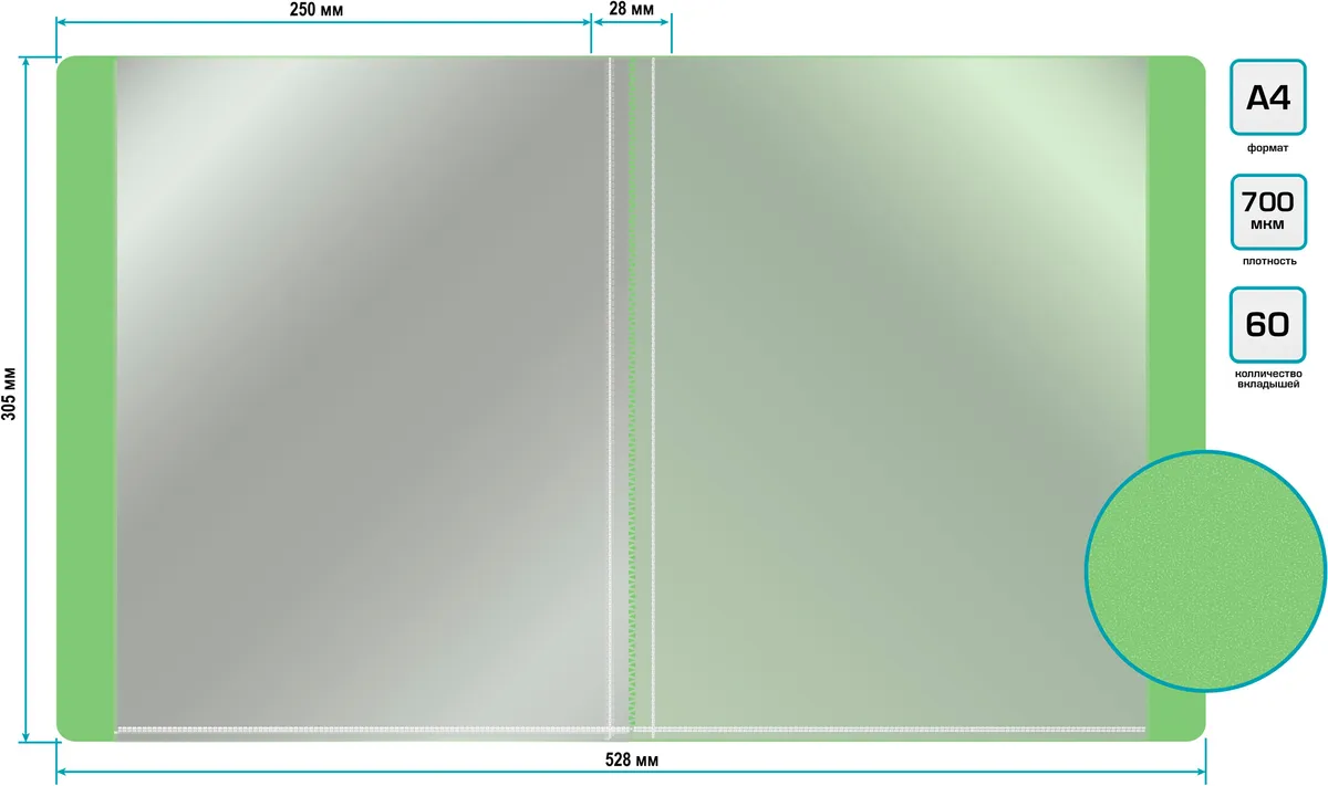 | Папка с 60 прозр.вклад. Бюрократ Gems GEM60GRN A4 пластик 0.7мм торц.карм с бум. встав зеленый турмалин | РОСС RU RU.АЖ49.Н05162 | 28.02.2024 | 26.02.2027 |