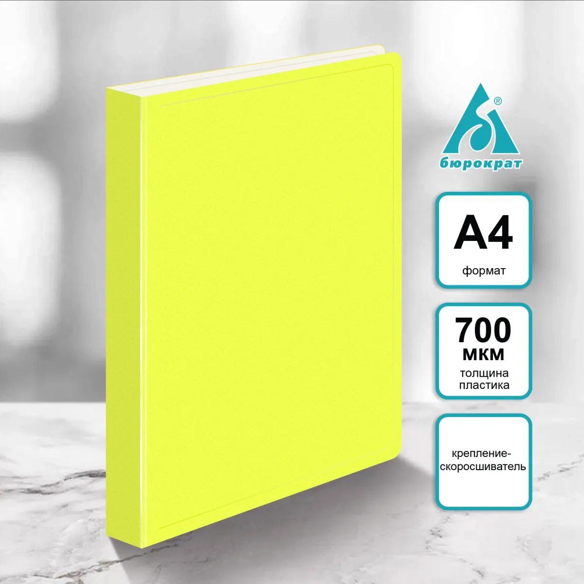 Папка метал.зажим Бюрократ Double Neon DNE07CYEL A4 пластик (DNE07CYEL)