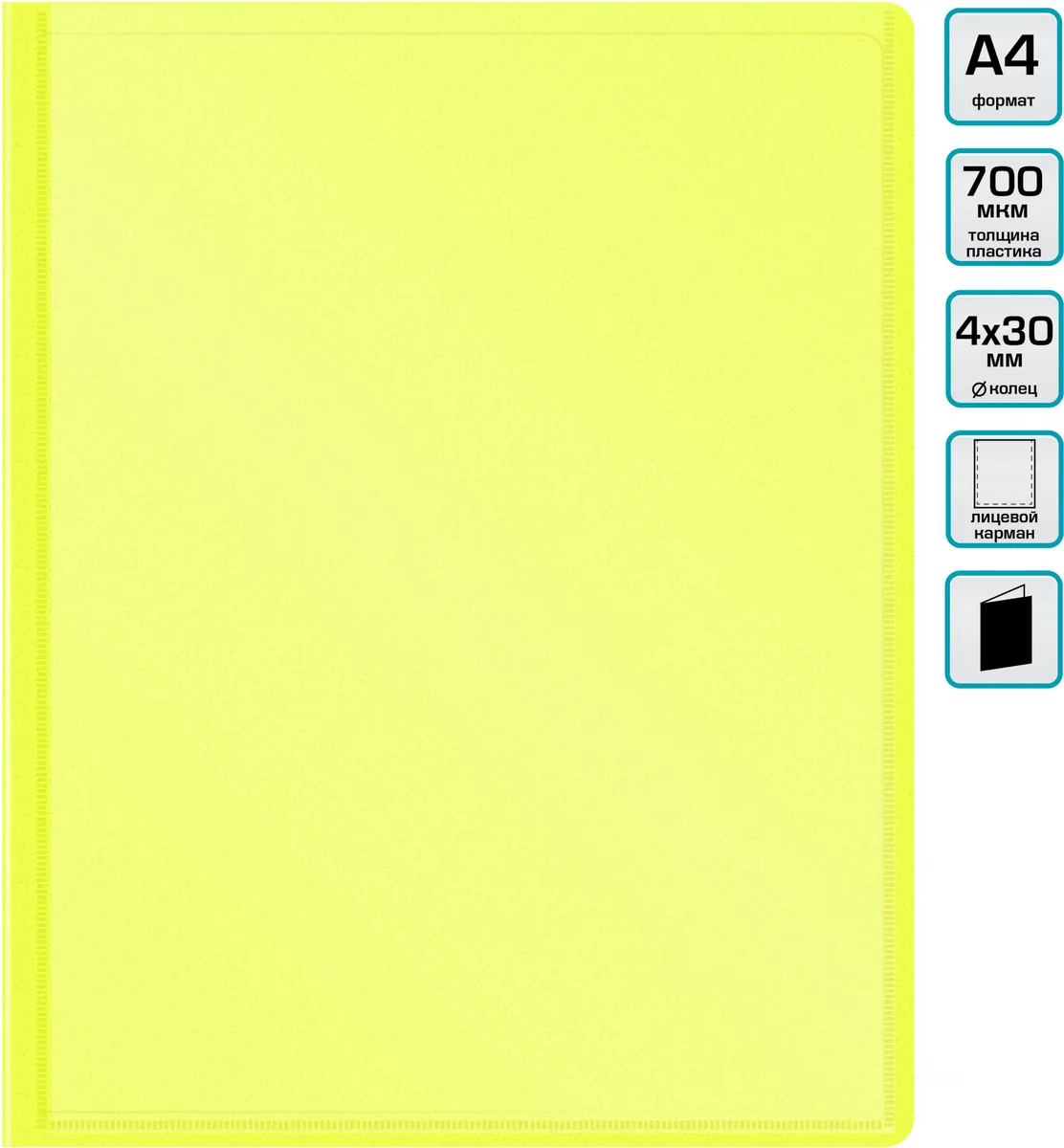 Папка панорама на 4-х кольцах Бюрократ Double Neon (DNE0740/4RYEL)