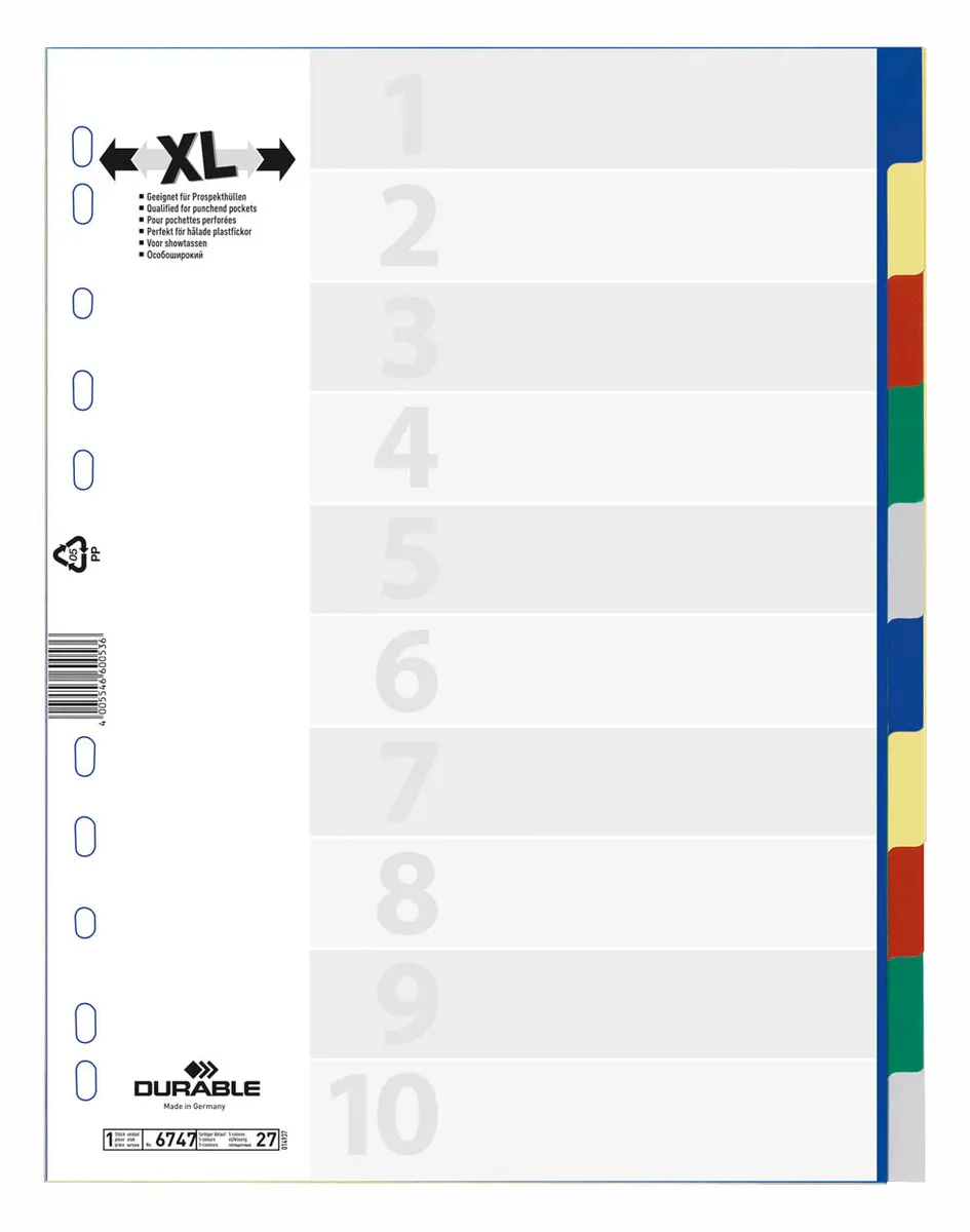Разделитель индексный Durable 6747-27 A4+ пластик 10 индексов (6747-27)