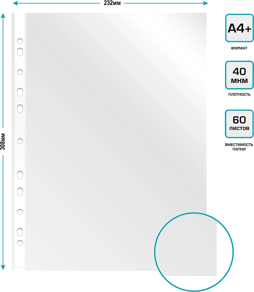 Папка-вкладыш Бюрократ Премиум 013BGPREM глянцевые А4+ 40мкм (упак.:100шт) (013BGPREM)